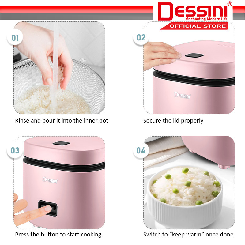 DESSINI ITALY 1.2L Electric Rice Cooker Non Stick Aluminium Inner Pot with Steamer Pengukus Periuk Nasi Elektrik
