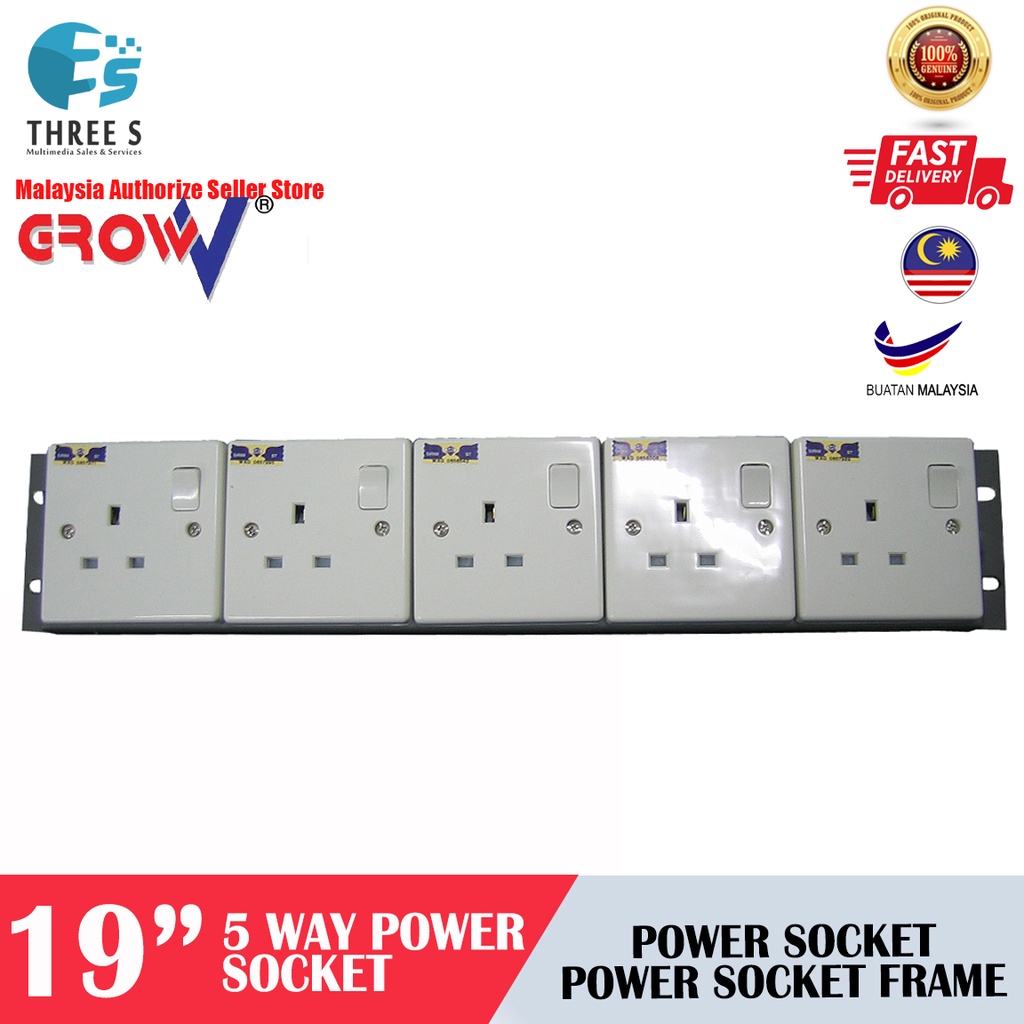 GrowV 19" 5 Way Power Socket -13amp / Power Socket Frame