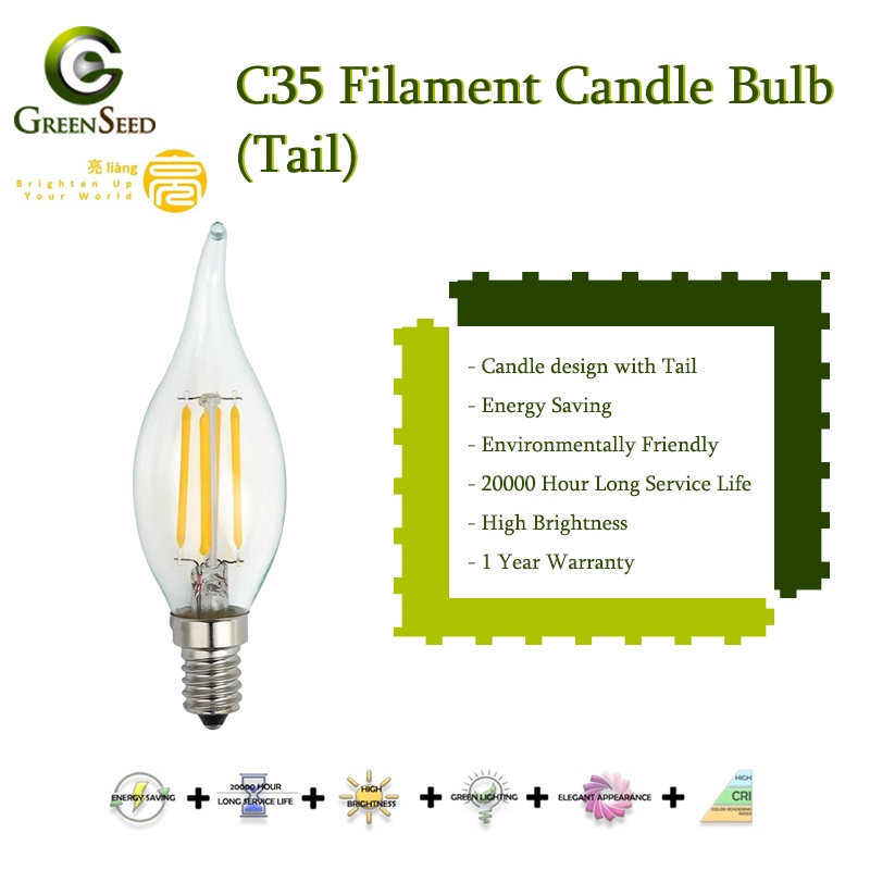 Gs Lighting C35 FILAMENT CANDLE LED BULB ENERGY SAVING EDISON FILAMENT BULB 4W W/W ( TAIL )