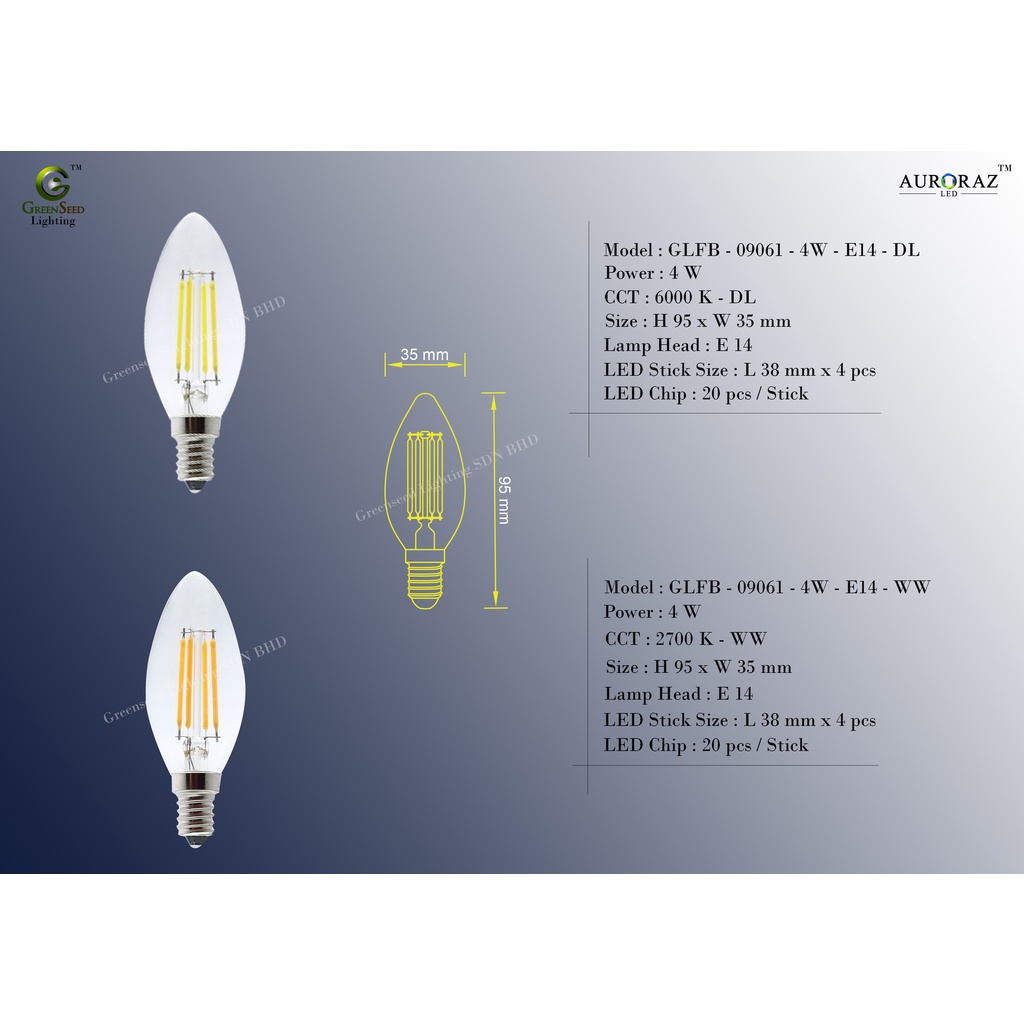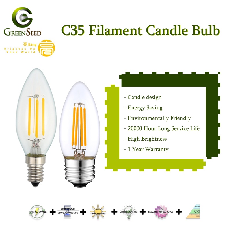 Gs Lighting C35 Filament Candle LED Bulb Energy Saving Edison Filament Bulb 4W DL WW E14 E27