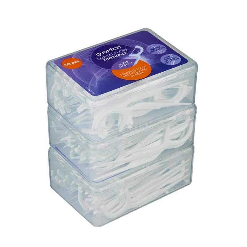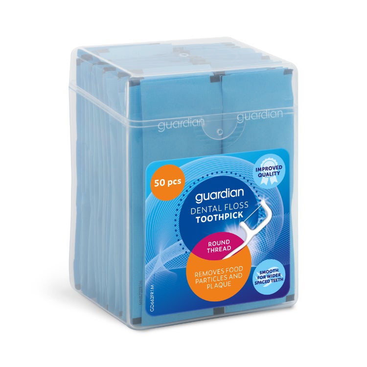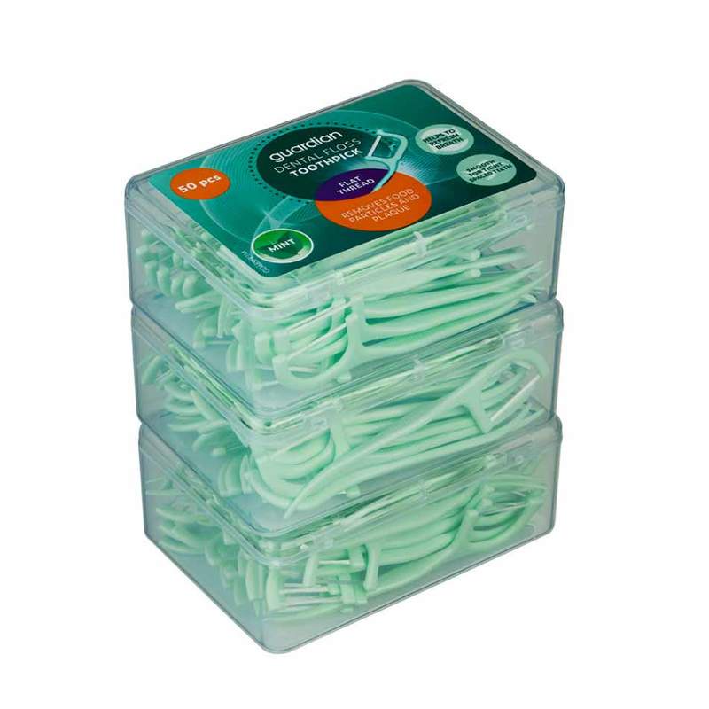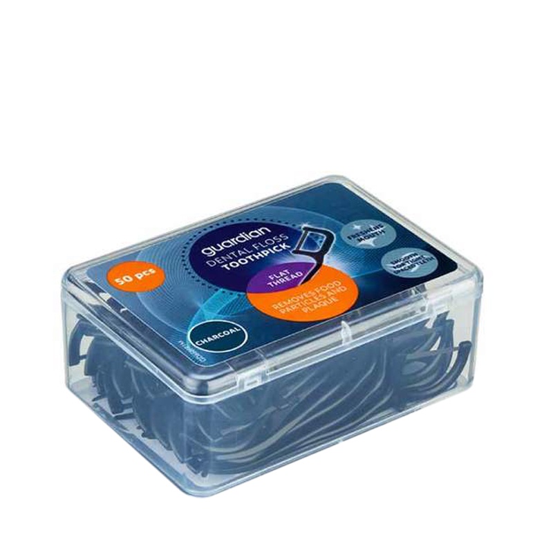 Guardian Dental Floss Toothpick Charcoal Mint Flat Thread, Mint Round Thread, Super Smooth