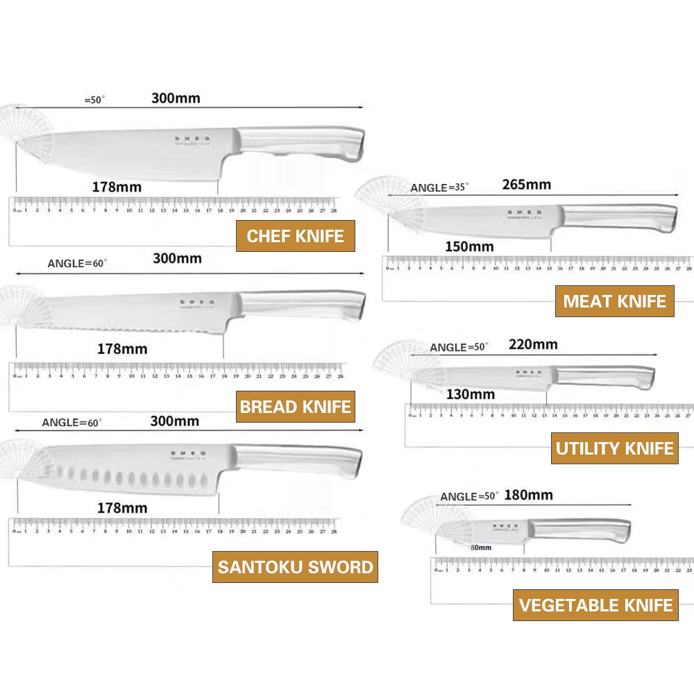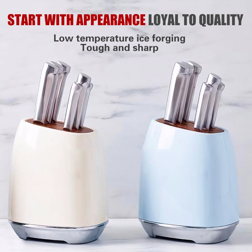 SMEG 7-piece kitchen knife set, household knife block set, retro western-style kitchen knife, household kitchen knife