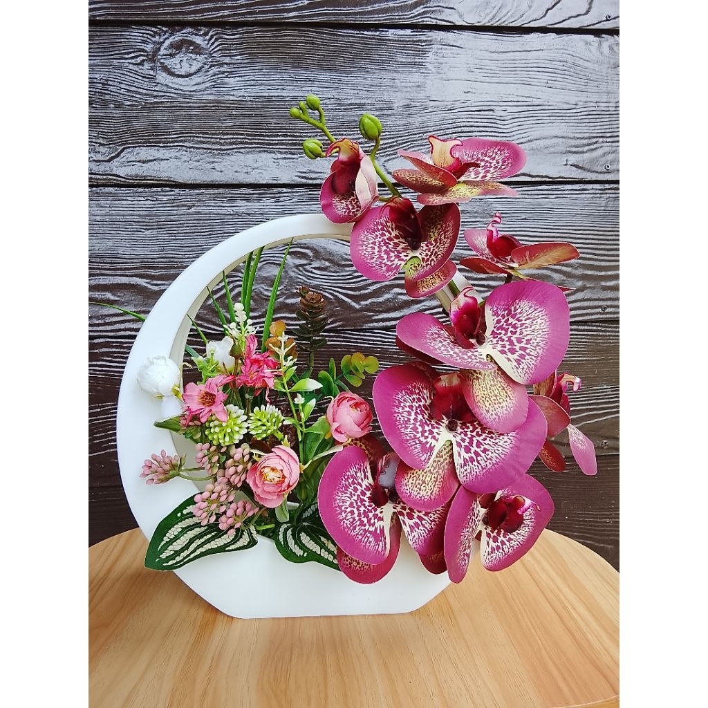 Gubahan Siap Bunga Orkid Latex 3D Printed Mix Bunga Rose/Lotus Pasu Gantung Dinding Murah untuk hiasan/Deco Rumah.