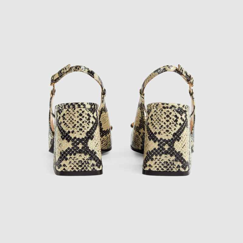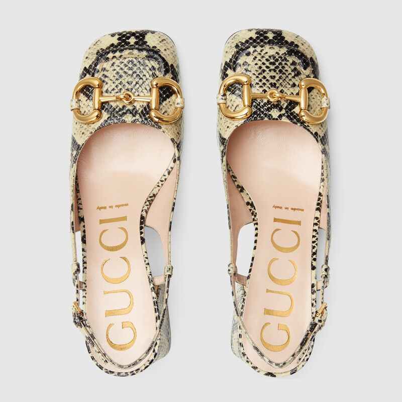 Gucci women's python print leather mid-heel slingback with Horsebit