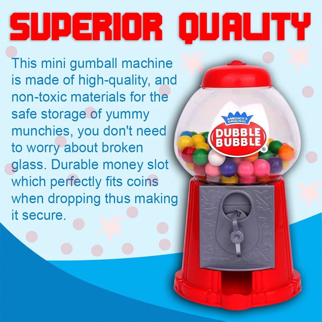 Gumball Machine for Kids - 8.5" Coin Operated Toy Bank - Dubble Bubble Classic Style Gum Machine Includes 45 Gum Balls