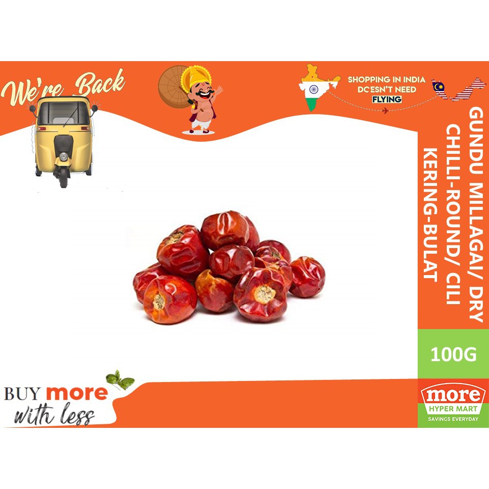 Gundu Millagai/ Dry Chilli-Round/ Cili Kering-Bulat +/- 100g