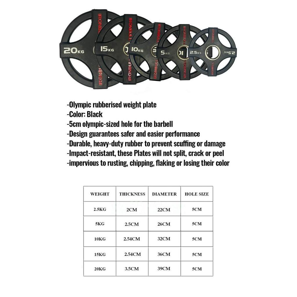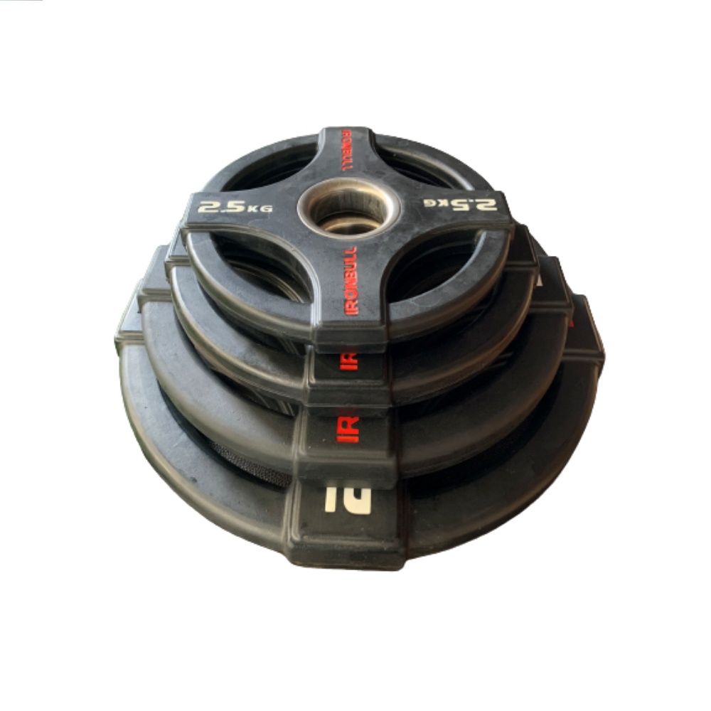 Gym Iron Bull 15kg 4 Grip Rubberized Olympic Weight Plate Commercial Rubber Bumper Plate Lifting Equipment Home Use