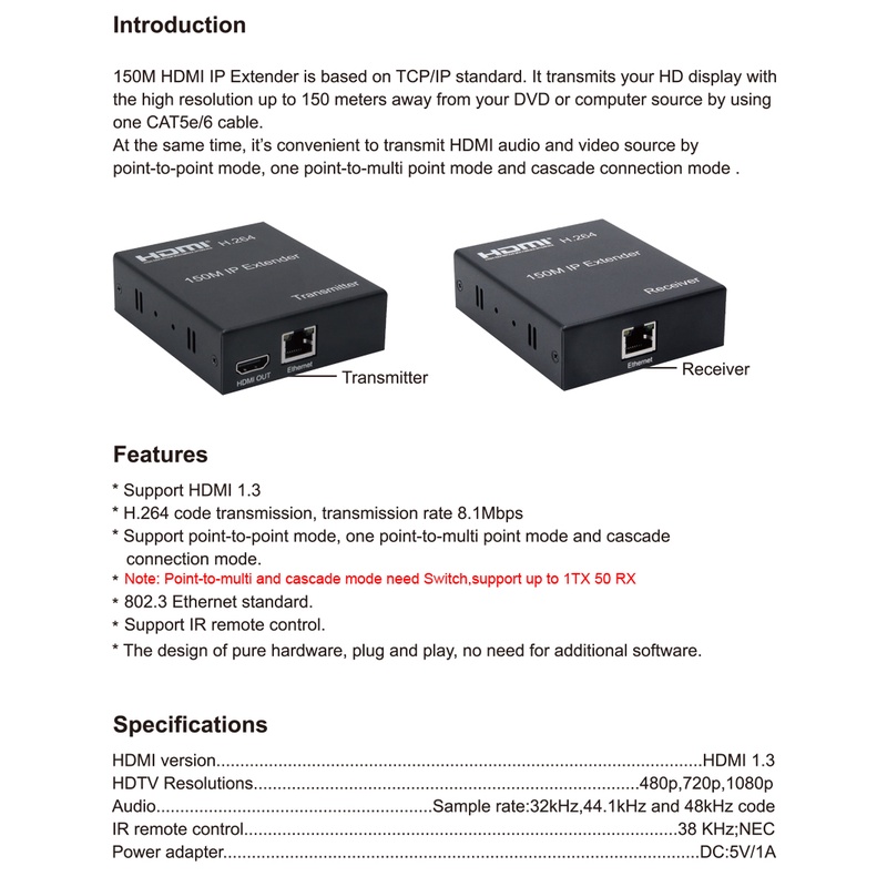 H.264 150M HDMI Extender Over IP HDMI rj45 Over UTP/STP CAT5e CAT6 Extensor 1080P HDMI IP extender Transmitter To Multi Receiver