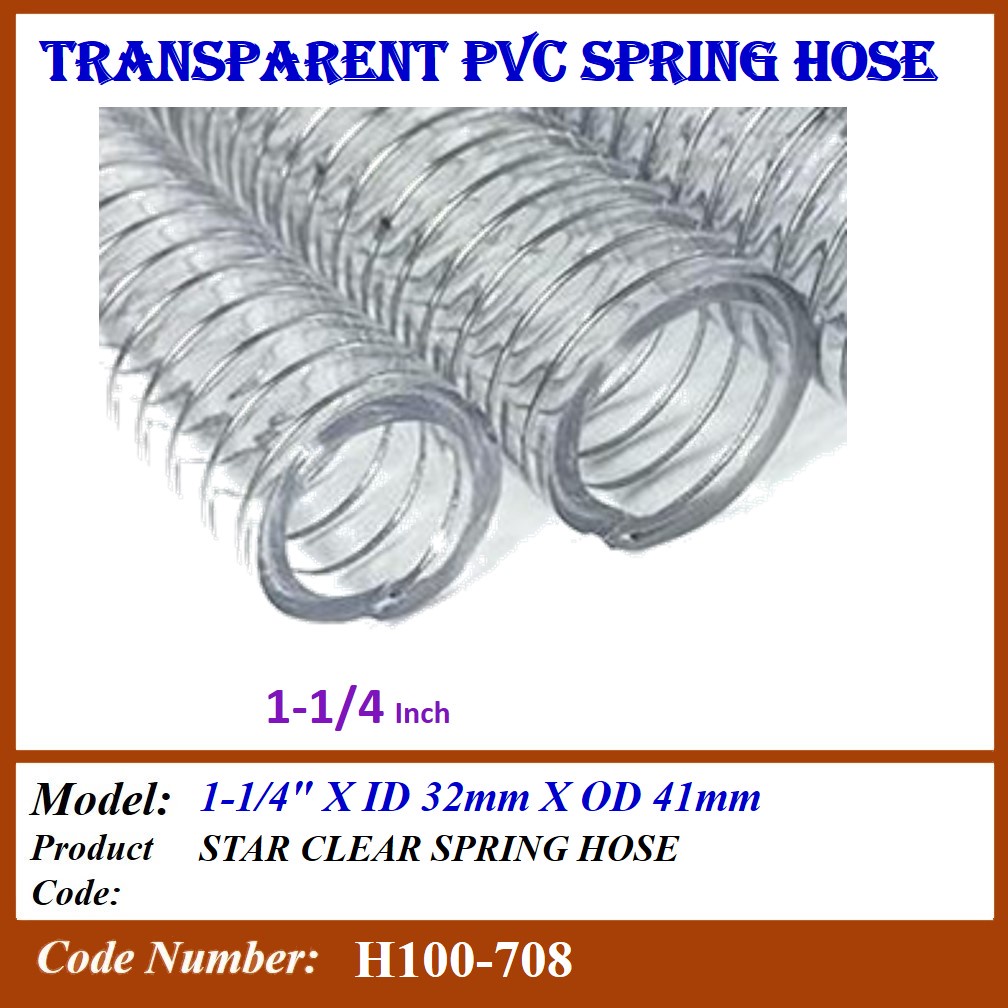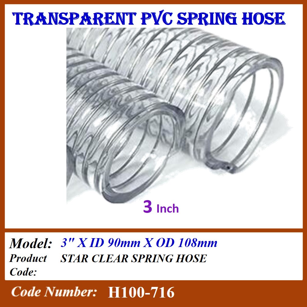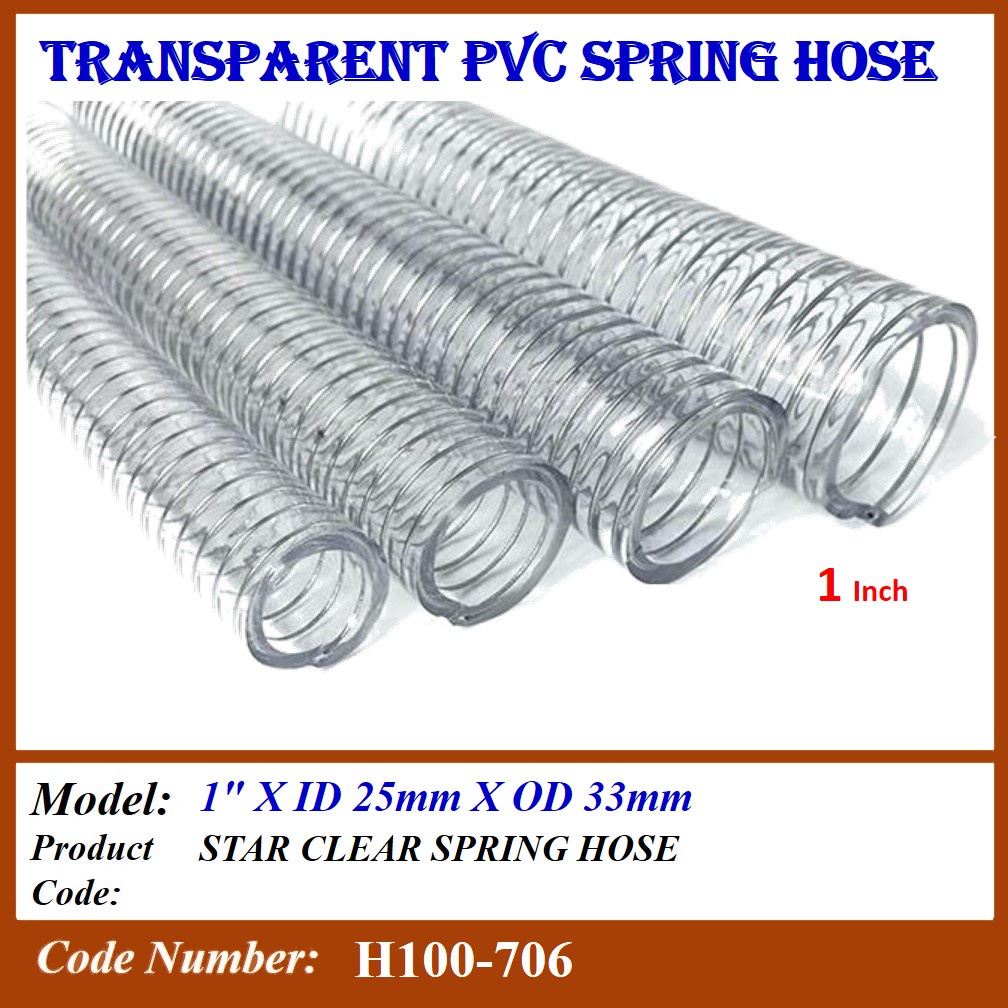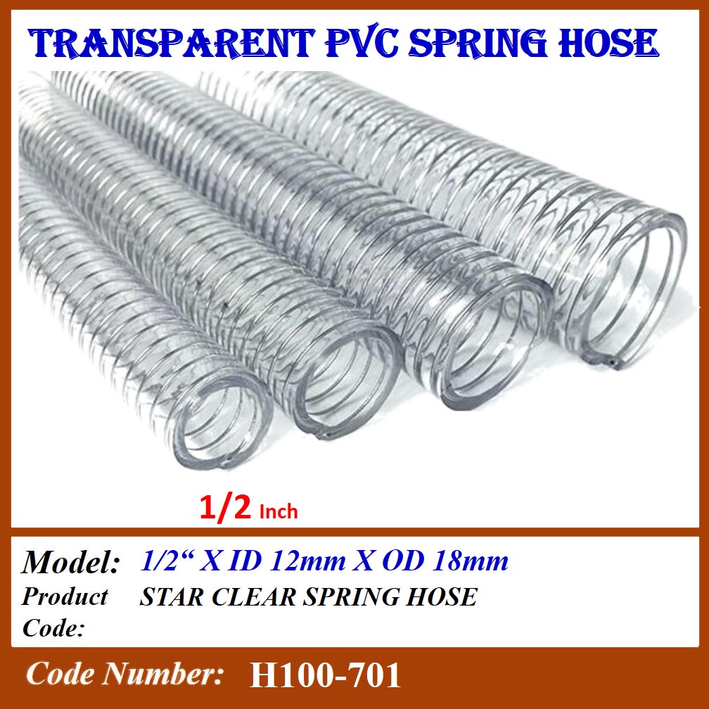 H100-7 (1 ROLL) PVC CLEAR SPRING HOSE WIRE HOSE SUCTION HOSE SIZE: 1/2",5/8",3/4",1",1-1/4",1-1/2",2", 2-1/2", 3", 4"