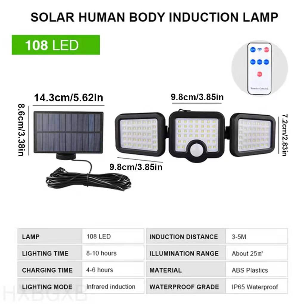 H3 Split Solar Lamp Motion Sensor 108 LED Solar Light 3 Mode Remote Control IP65 Waterproof Outdoor Lighting