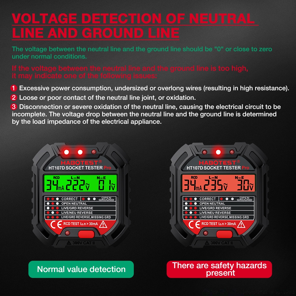 HABOTEST HT107+HT89 HT107 Socket Tester Pro Voltage Test RCD 30mA Socket Detector US EU UK Plug Ground Zero Line Plug Polarity Phase Check