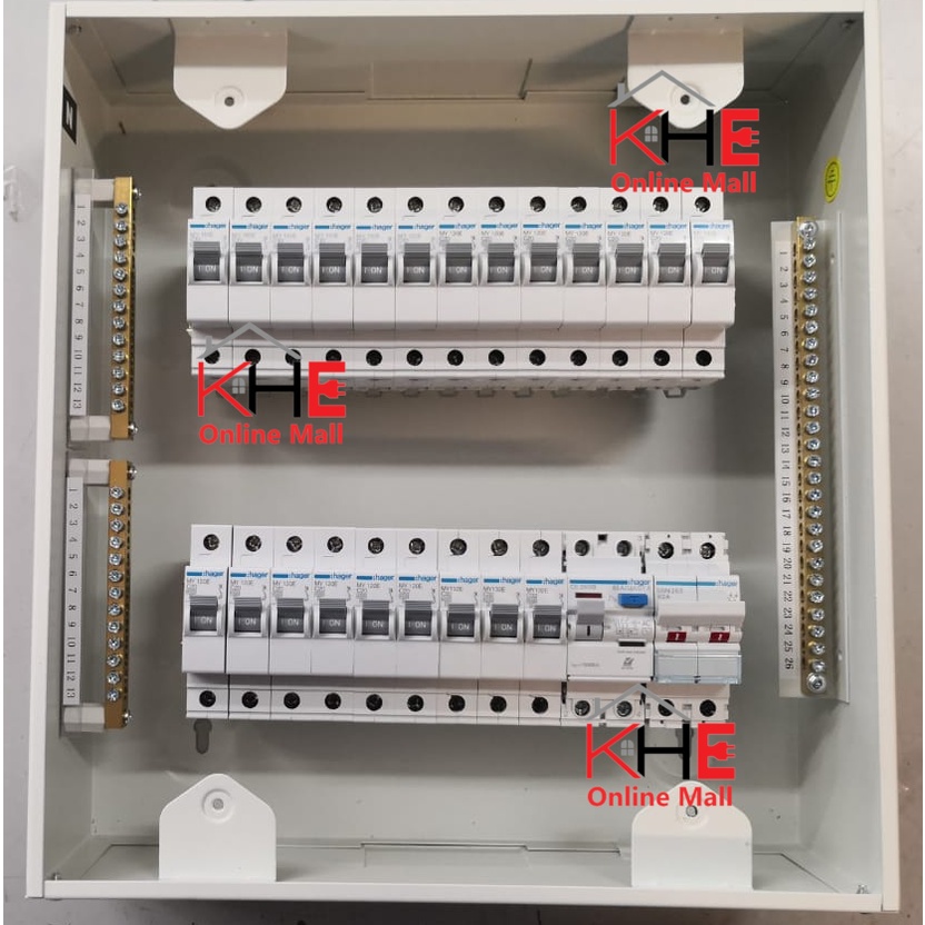 HAGER 26WAY 2ROW METAL AND FULL SET(SINGLE PHASE/ 3PHASE )CONSUMER METAL DB / MCB BOX COMPLETE SET