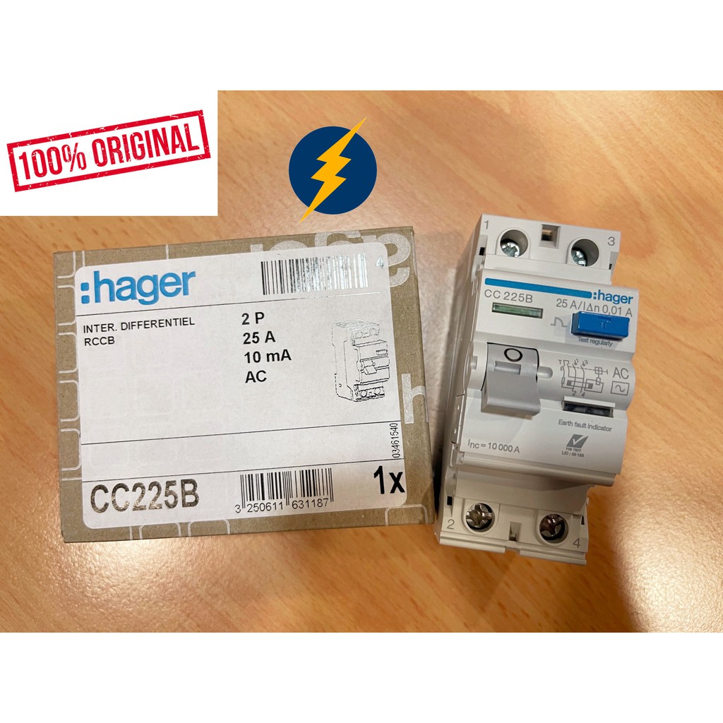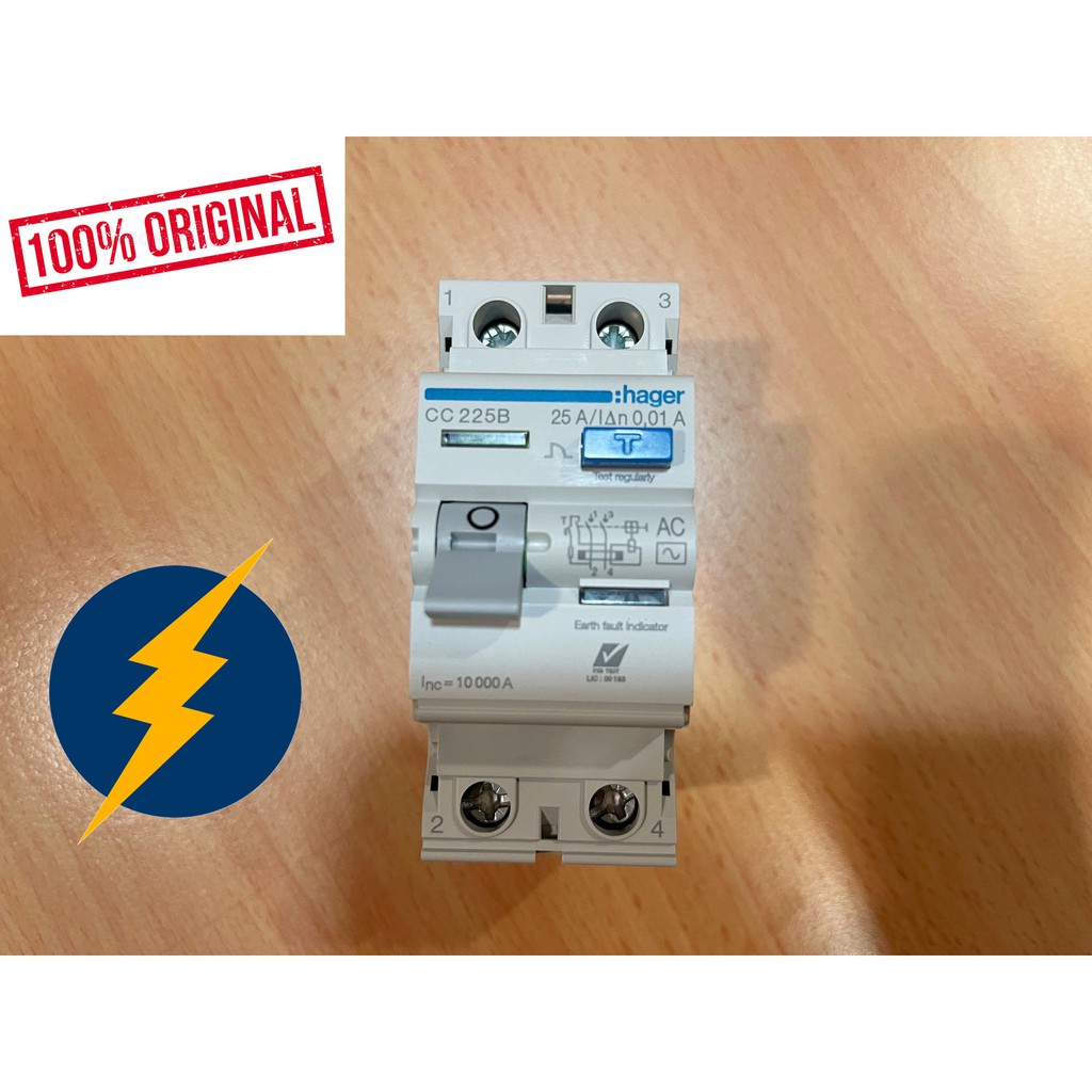 HAGER CC225B 25A 2 POLE 10mA RCCB ELCB : RCCB FOR WATER HEATER
