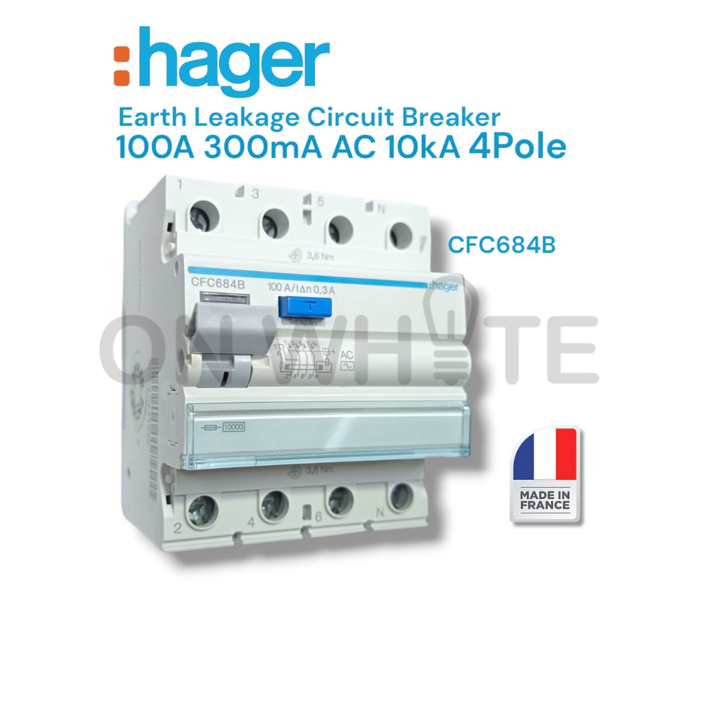 HAGER ELCB / RCCB 4POLE 40A / 60A / 100A (100mA / 300mA ) Earth Leakage Circuit Breaker /Residual Current Circuit Break