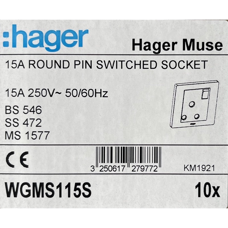 HAGER MUSE 15A SINGLE SWITCH SOCKET suis plug 15a