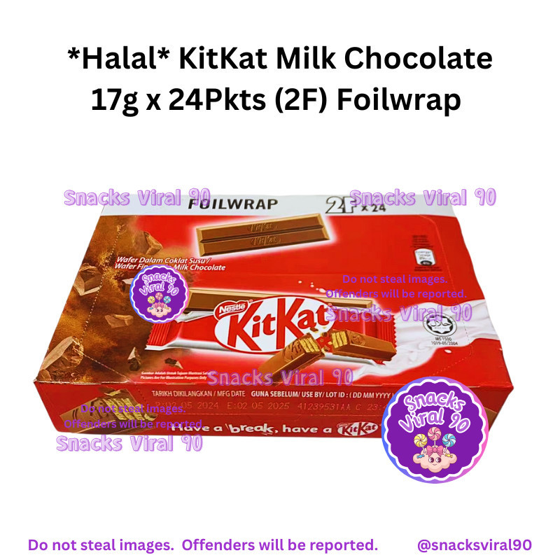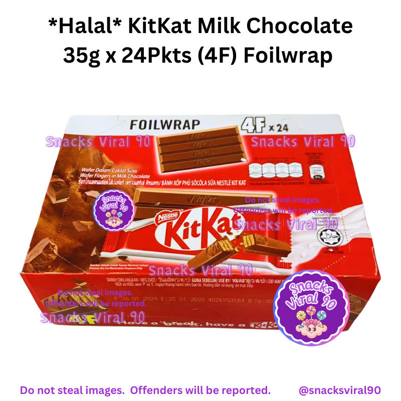 HALAL KitKat Milk Chocolate Dark Chocolate Milo (2F/4F) Foilwrap 17g x 24Pkts / 35g x 24Pkts SV90