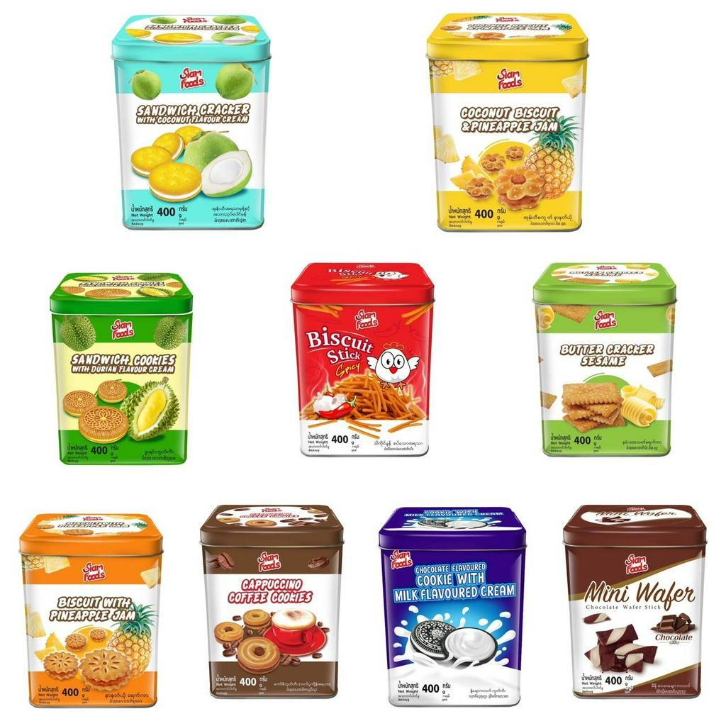 HALAL Siam Food Biscuit Tin Series Pineapple Jam/ Coffee/ Chocolate Wafer/ Coconut Cream/ Durian Cream 400g