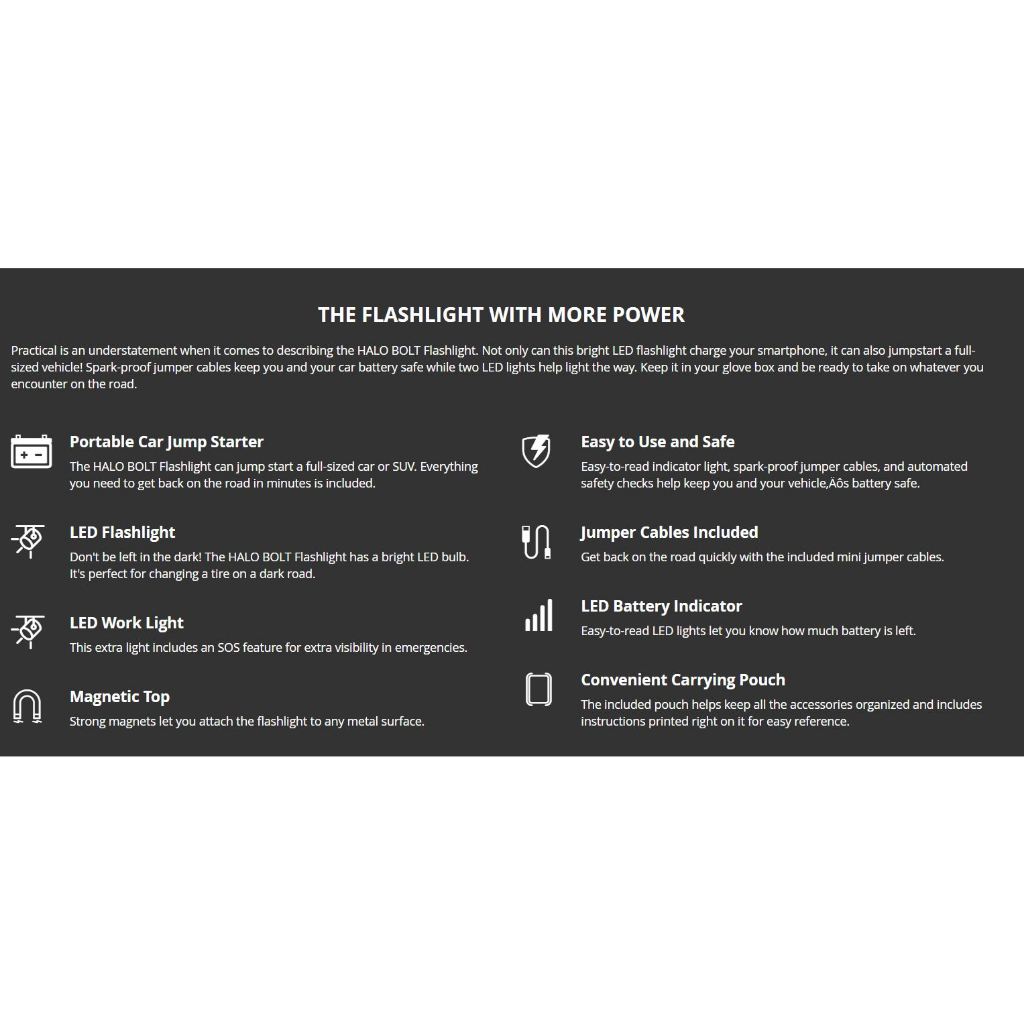 HALO Bolt Flashlight 36630mWh - Torchlight / Car Jump Start / Magnetic Head / Road Emergency Power Bank Jump Starter