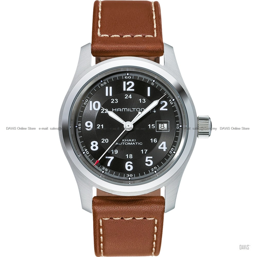 HAMILTON H70555533 Men's Watch Khaki Field Automatic Date 42mm Leather Black Brown Avengers Captain America *Original