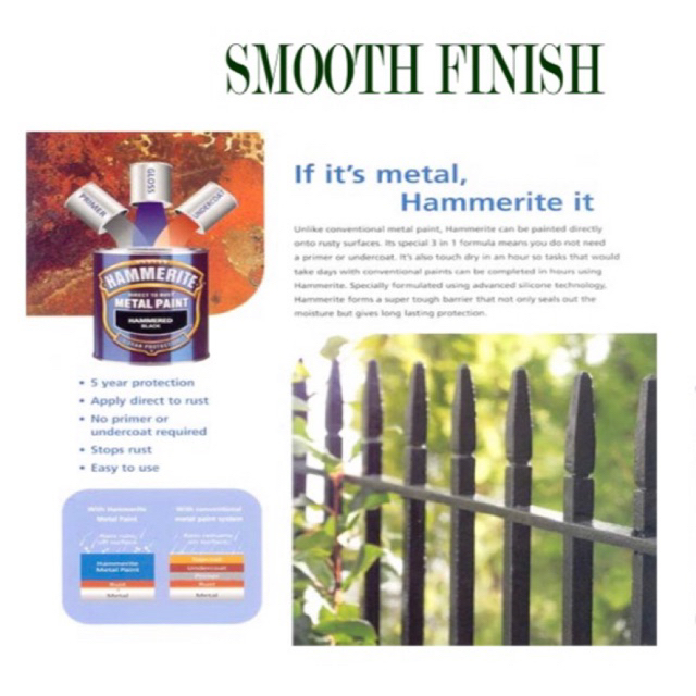 HAMMERITE DIRECT TO RUST METAL PAINT (Smooth Finish) 500ml - (RedWine, OliveGreen, Green, Gold)