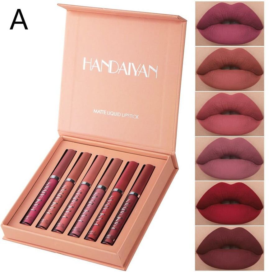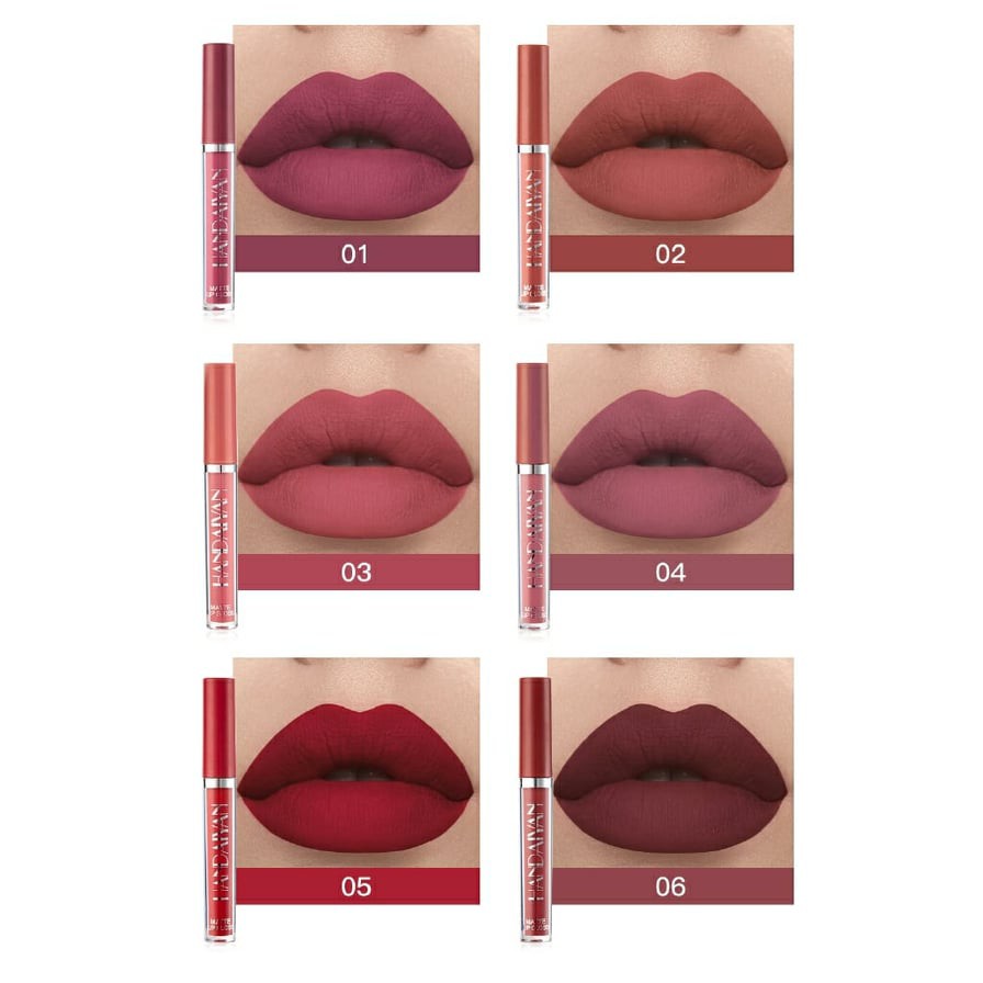 HANDAIYAN 6PCS/ SET Matte Liquid Lip Gloss Set Creamy-matte Shimmer Lipstick Kit Waterproof and Non-stick Gift Gincu 口红