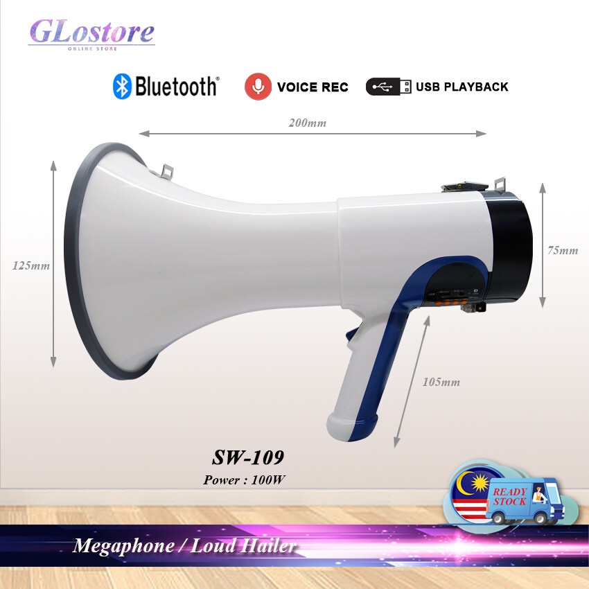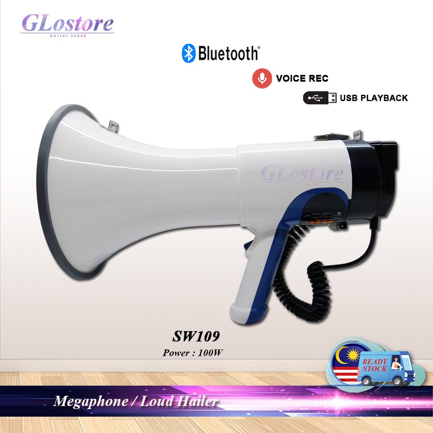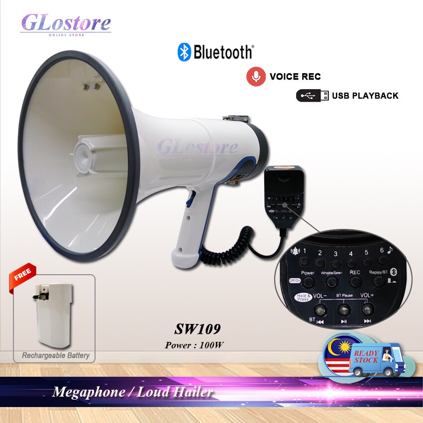 HANDHELD MEGAPHONE 100W SW109 WITH RECHARGEABLE BATTERY RECHARGEABLE LOUD HAILER 100W HAILER KUAT MEGAFON SW109