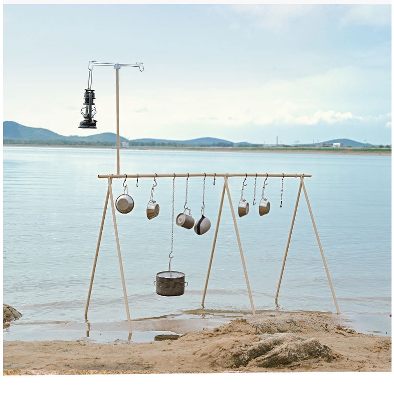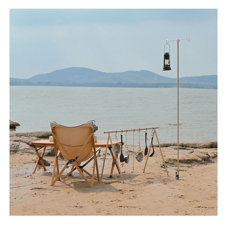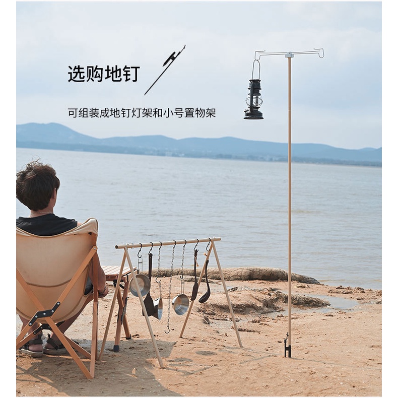 HANGING RACK 2in1 Outdoor camping portable light stand folding telescopic solid wood lamp pole lamp