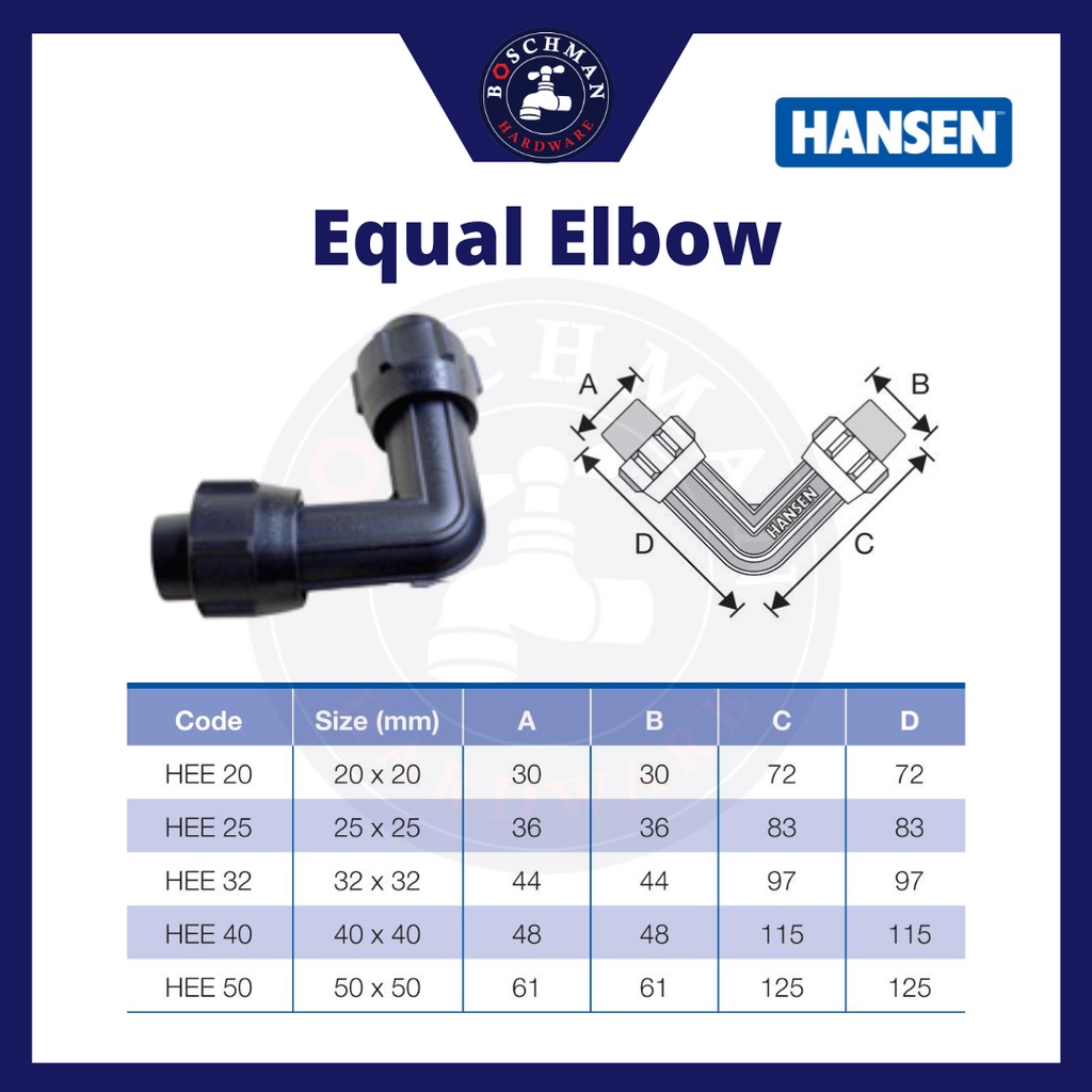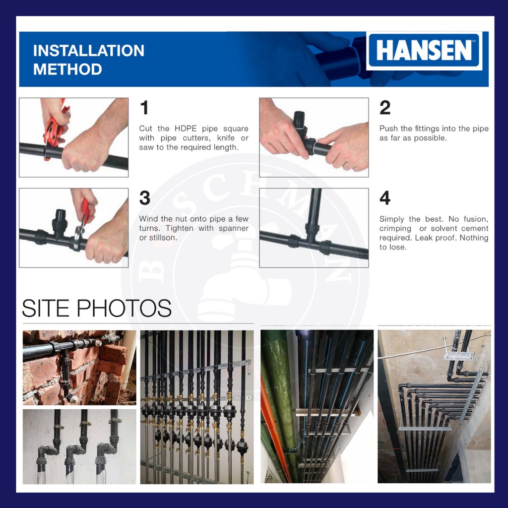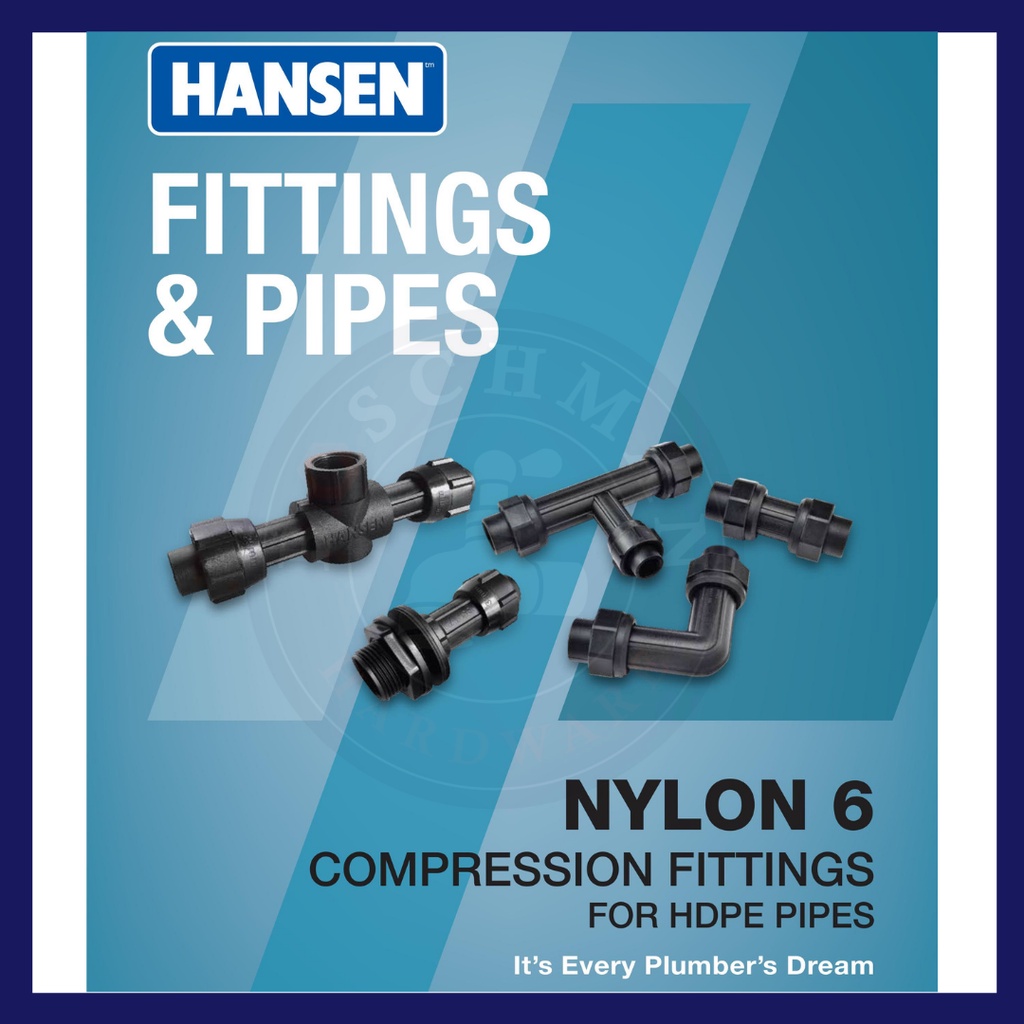 HANSEN Fittings Connector Pipe & Fitting System Poly pipe fittings HDPE water pipes paip air Socket Elbow Tee FTA MTA