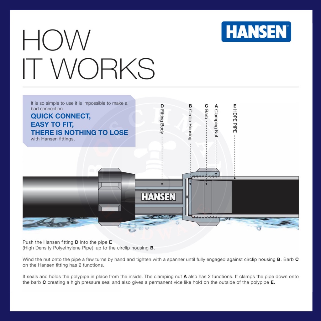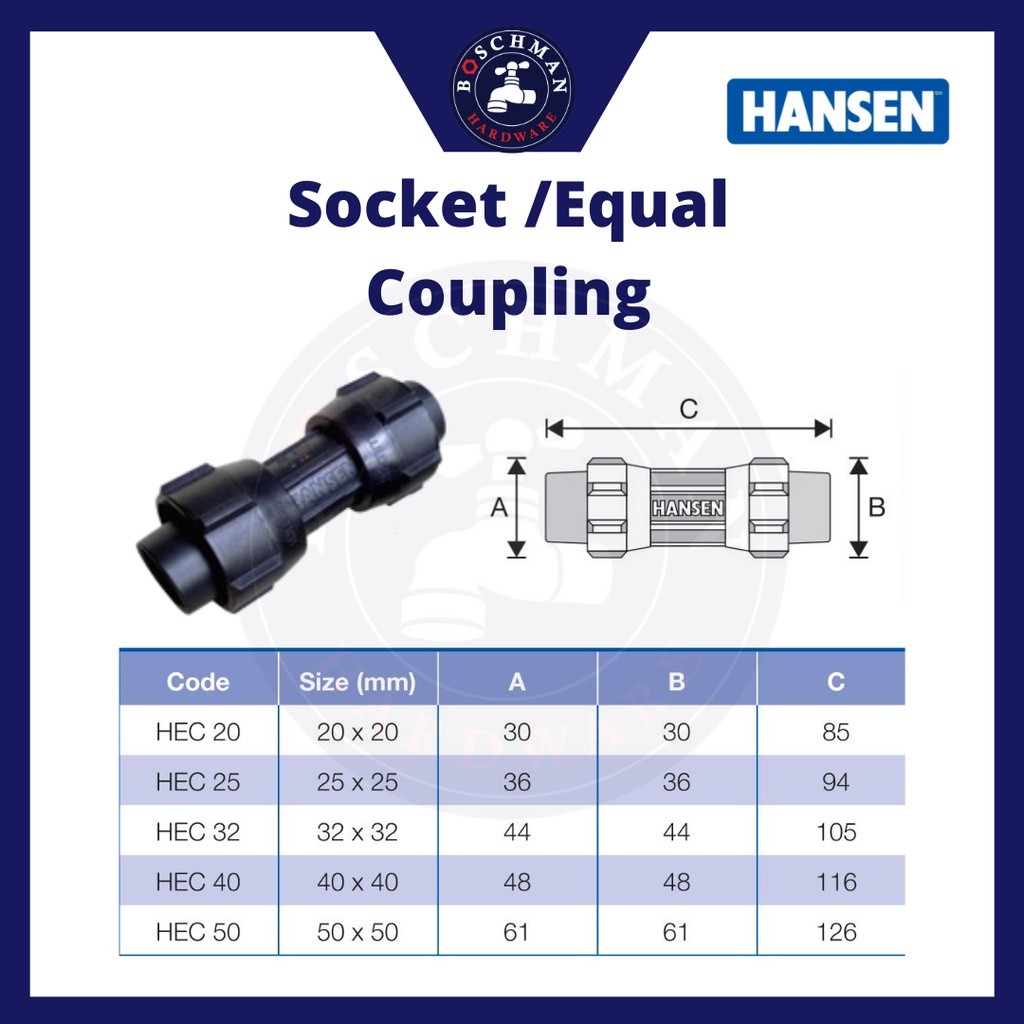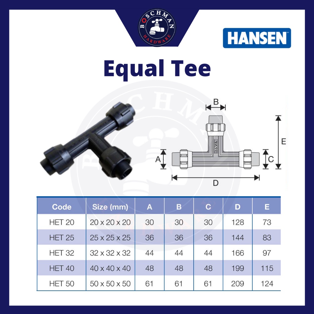 HANSEN Fittings Connector Pipe & Fitting System Poly pipe fittings HDPE water pipes paip air Socket Elbow Tee FTA MTA