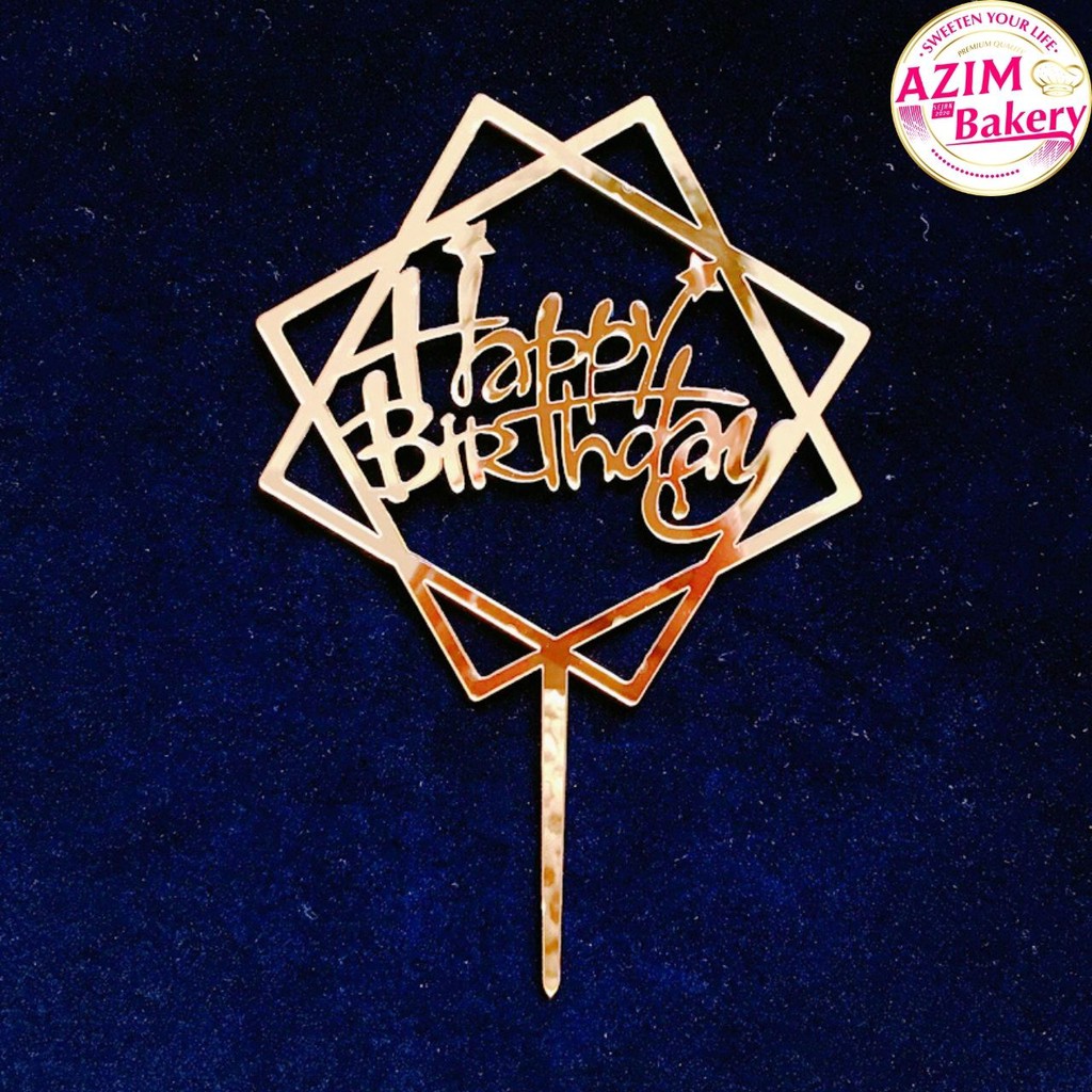 Happy Birthday Cake Topper Square Black (1pc) Kek Topper Happy Birthday | Gold Cake Topper Square Gold Cake Topper