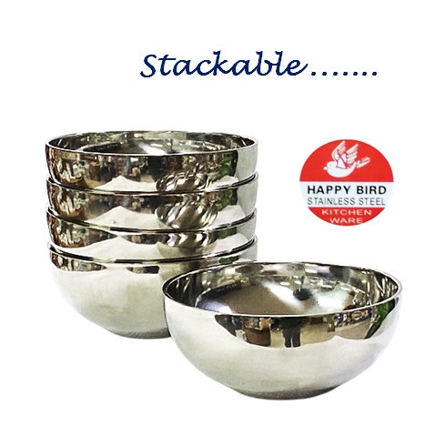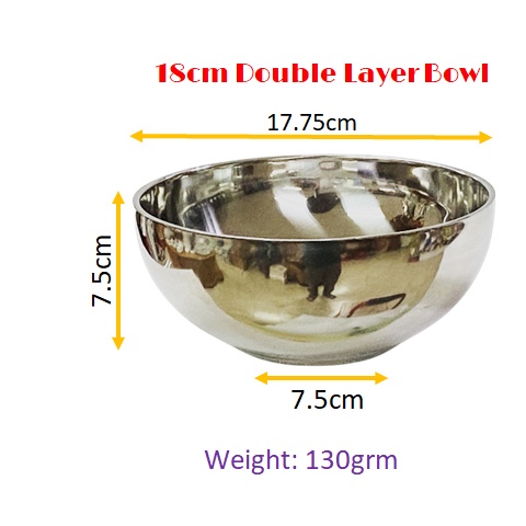 HAPPYBIRD 18cm Anti Scald Insulated Double Layer Stainless Steel Bowl | Kitchen Bowl
