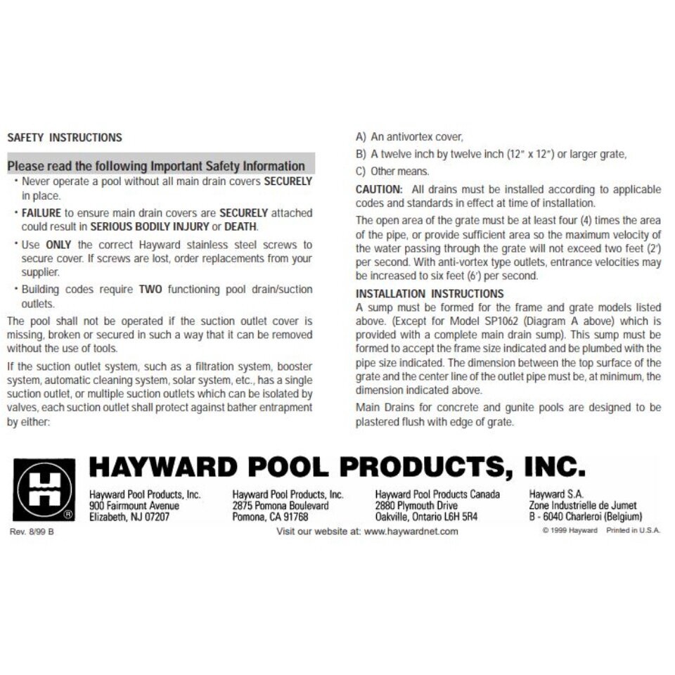 HAYWARD SP1030 MAIN DRAIN COVER 8" DIA WHITE - SWIMMING POOL ACCESSORIES
