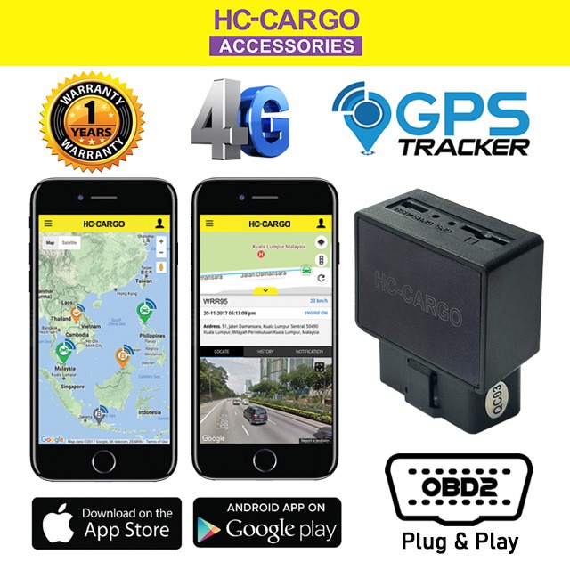 HC CARGO OBD GPS Tracker Car 4G Connection OBDII Connector Vehicle Tracking Device 16 PIN locator with Free MobileAPP