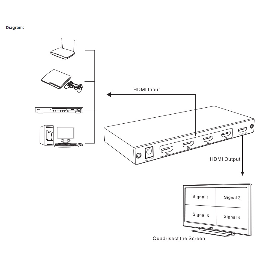 HDMI 4x1 Screen Viewer 4 Port Multi-Viewer Quad Multiviewer for CCTV 4 Port Multi-View HDMI Switch 4 Diplay