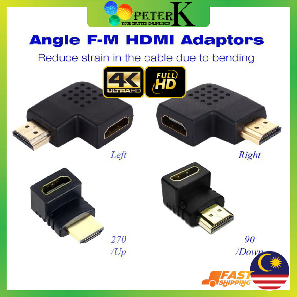 HDMI 90 degree / 270 degree L shaped Connector Cable Male to Female Converter Adapter For TV Decoder PC Laptop