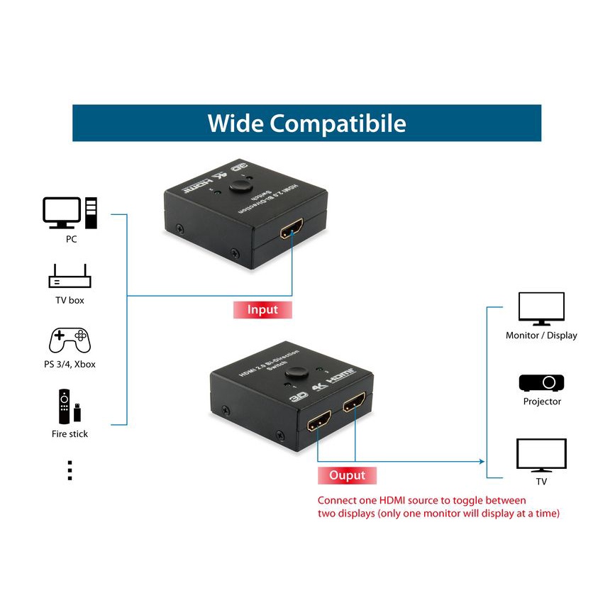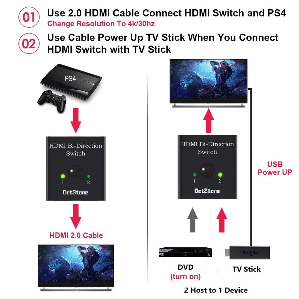 HDMI BiDirectional Switcher 4K Splitter HD 3D 2 in 1 Out 1 in 2 Out Switch Switcher Dual 2 ways way
