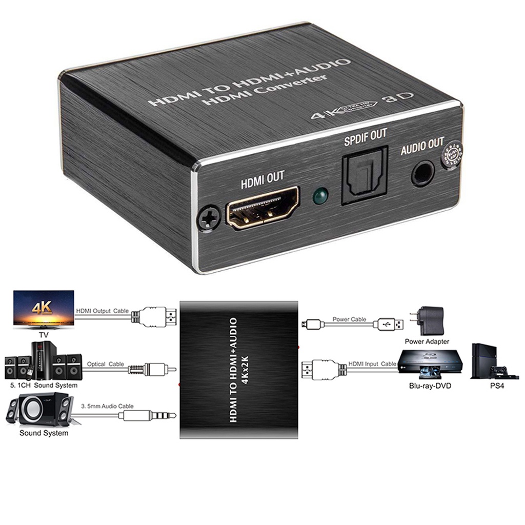 HDMI-COMPATIBLE AUDIO EXTRACTOR STEREO EXTRACTOR CONVERTER OPTICAL TOSLINK SPDIF + 3.5MM AUDIO SPLITTER ADAPTER