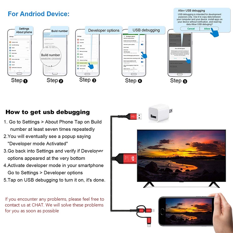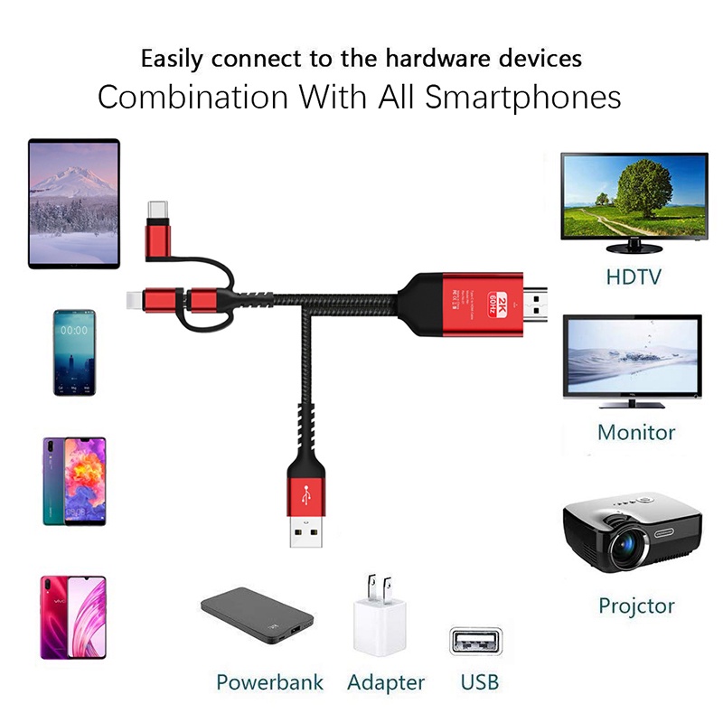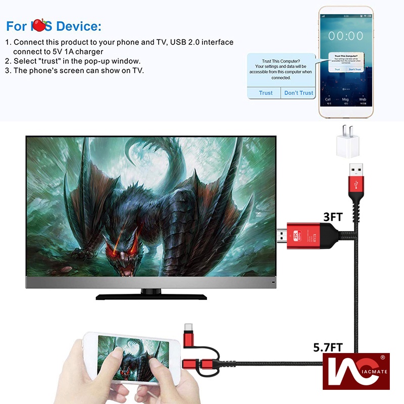 HDMI Cable, USB C to HDMI 1080P Universal Phone to TV HDMI Mirroring Adapter Compatible with Smartphone/Tablet