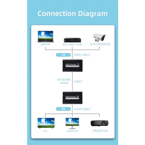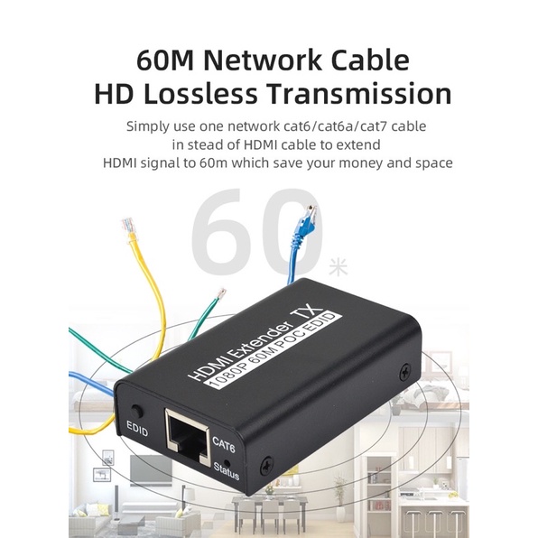 HDMI Extender 60M Over Single Cat5e/Cat6 Ethernet Cable Up To 60M 30Hz OR 1080P 60Hz HDMI Transmitter