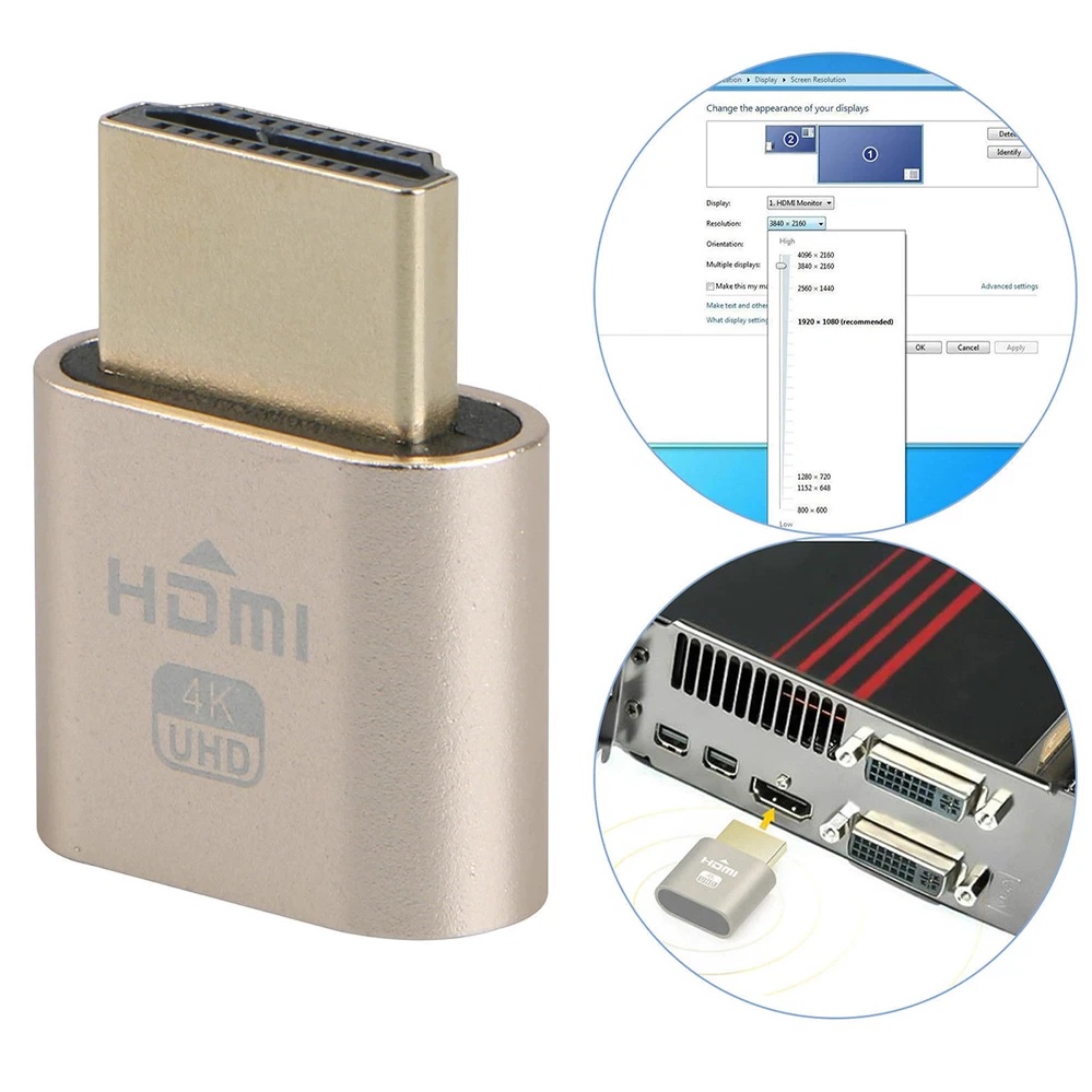 HDMI / HDTV Dummy Plug Virtual Display Emulator Adapter GPU Max 4K@60H Resolution