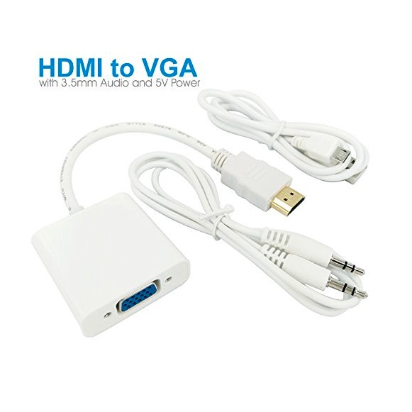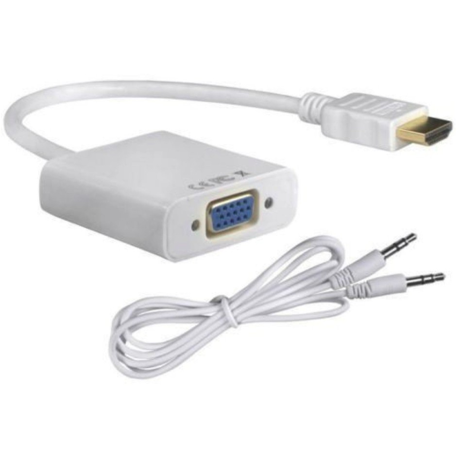 HDMI Male to VGA Female Video Converter Adapter Cable with Audio (White)