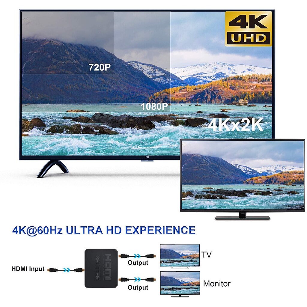 HDMI Splitter 1 in 2 Out 4k Dual Port Spliter Split Screen HDCP Video Audio Adapter For Monitor TV Astro