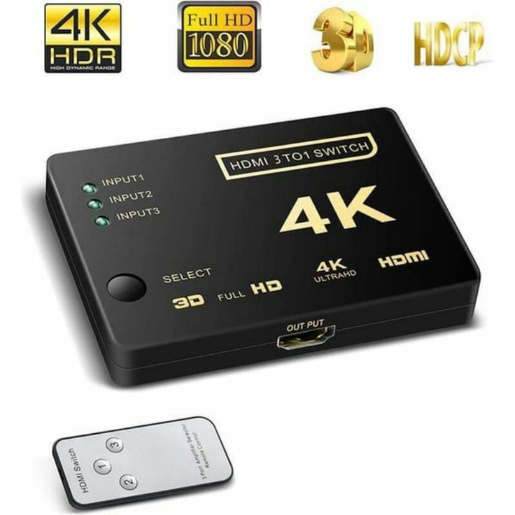 HDMI Switcher 5 In 1 3 in 1 Out 4K HDMI Switch ,IR Remote Control 4K 30Hz HD 1080P Compatible with TV PS5 PS4 Xbox