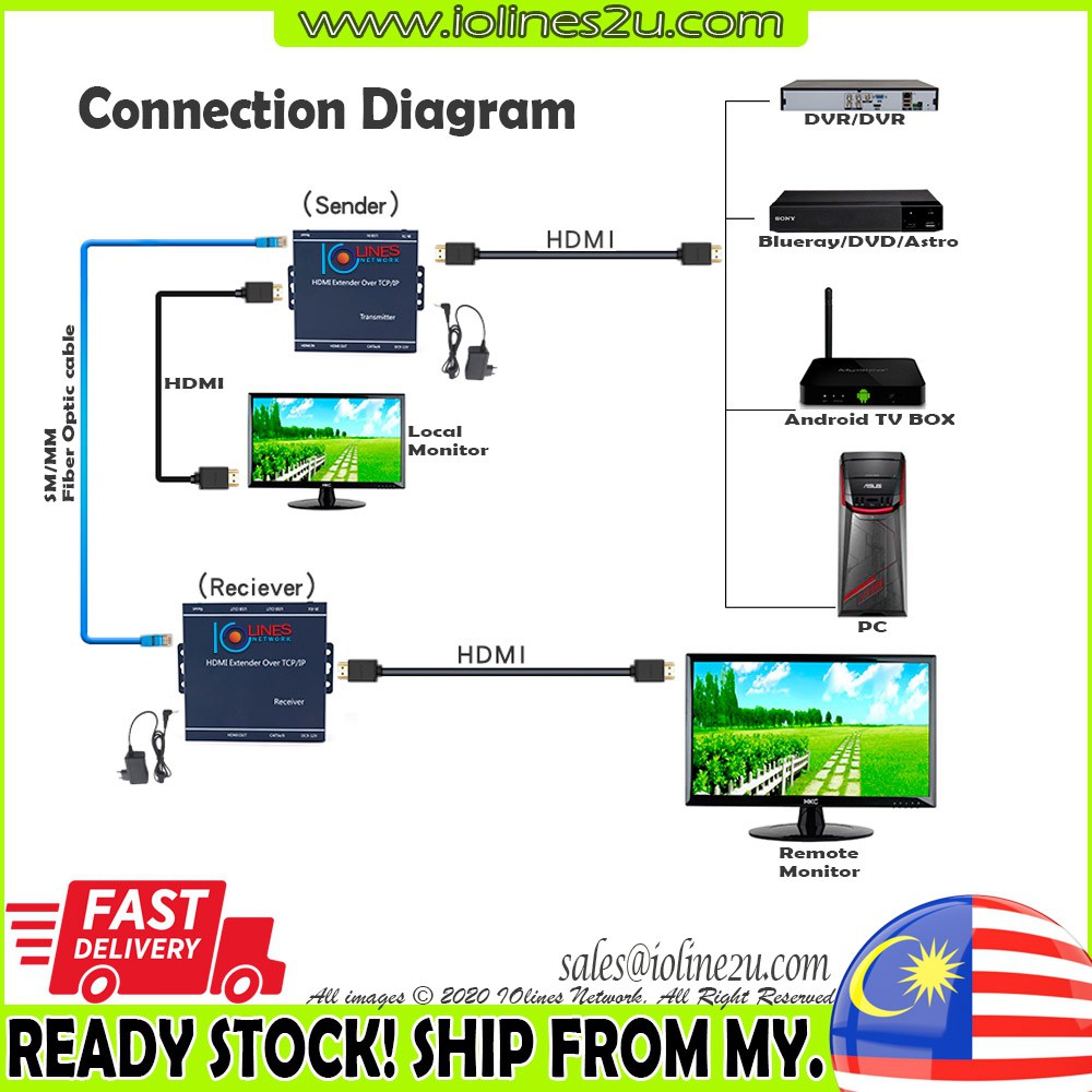 HDMI extender over fiber optic cable Full HD 1080P 720P CCTV video Single mode 20KM Multimode 2km SC