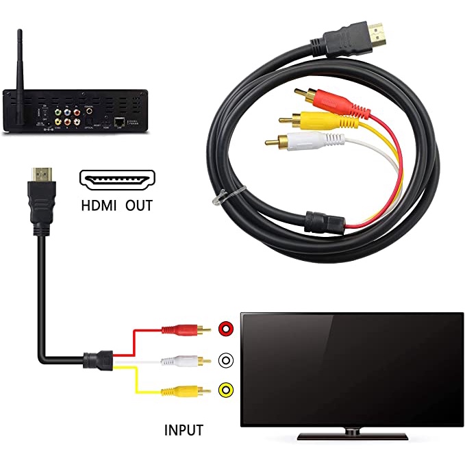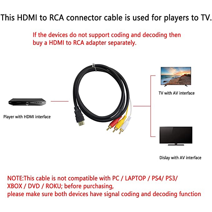 HDMI to RCA Cable,One-Way Transmission from HDMI to 3-RCA Video Audio AV Component Adapter Cable For HDTV-5FT