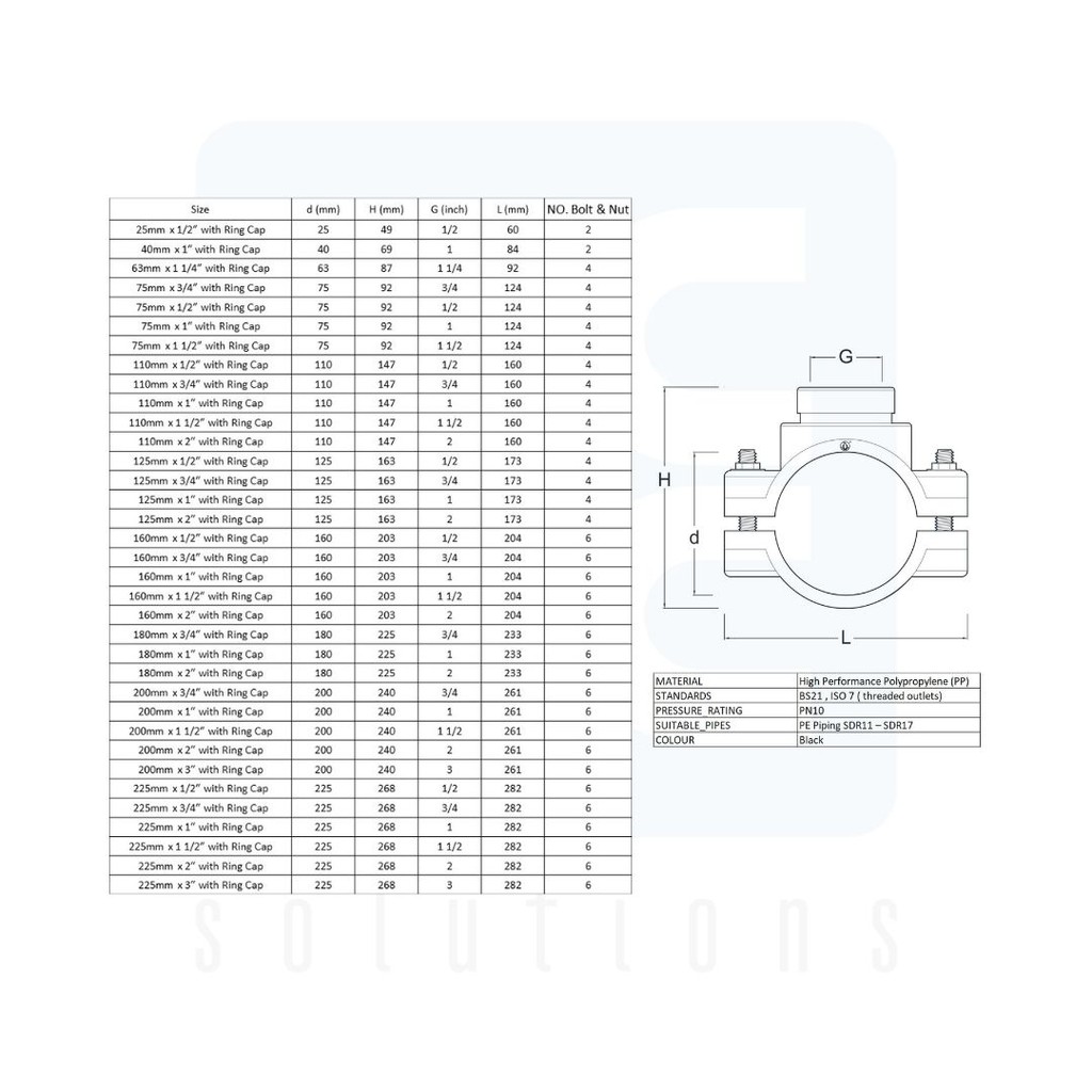 HDPE Compression Poly Pipe Fitting Poly Pipe Clamp Saddle Clamp Female Threaded Ends (Single) 25mm - 180mm with Ring Cap