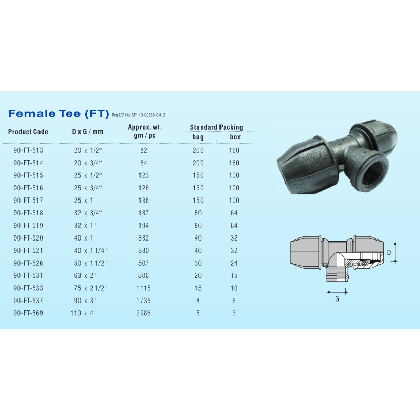 HDPE FITTINGS Poly Female Tee, PP Poly Water Connection Fitting 20mm 25mm 32mm 1/2" 3/4" 1"