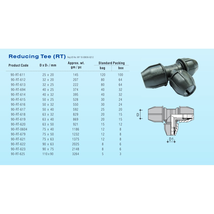 HDPE FITTINGS Reducing Tee Coupling Reduce Tee, PP Poly Water Connection Fitting 20mm 25mm 32mm