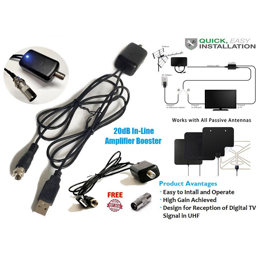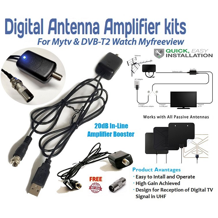 HDTV ANALOG & DIGITAL TV Antenna amplifier kits Filter Booster 20dB aerial myfreeview mytv usable