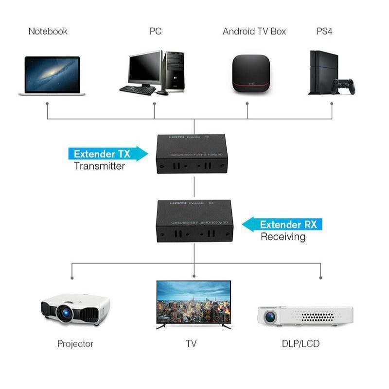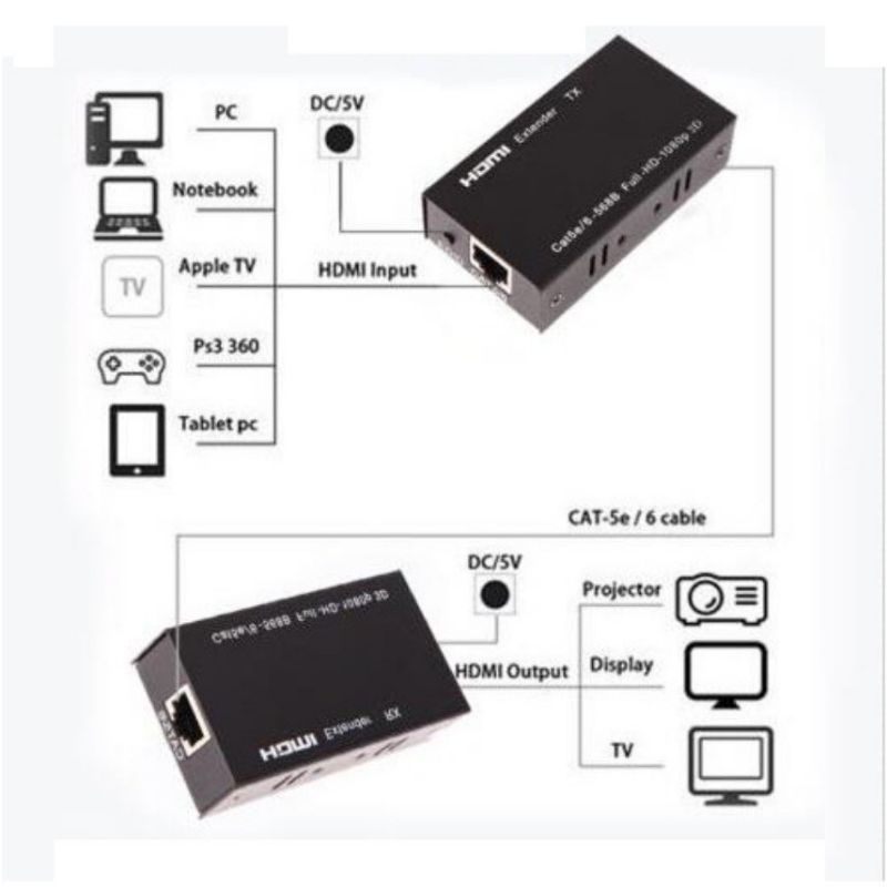 HDTV/HDMI EXTENDER 60M OVER LAN CAT5E / CAT6 CABLE 1080P FULL HD